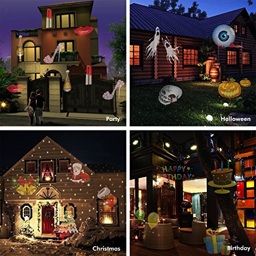 【12 Festive Slides】Total 12pcs slides(Christmas, maple leaf, happy birthday, Queen's day, Halloween's day, snowflakes etc.), create instant atmosphere for parties, festivals or entertainments.