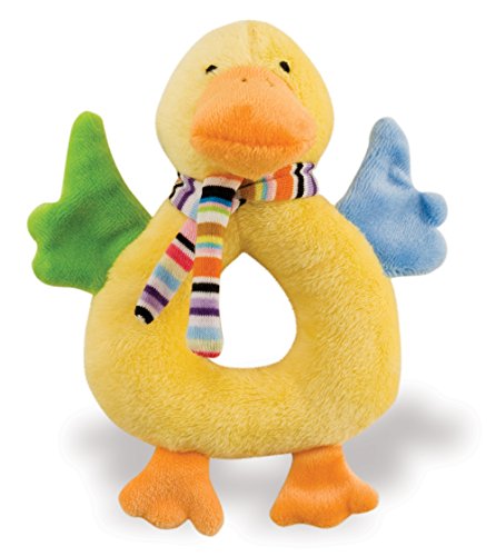 - Perfect combination to entertain, ring shaped toy with soft velour outside and gentle rattle inside so your baby can easily hold and enjoy.