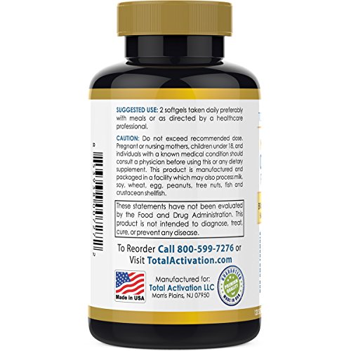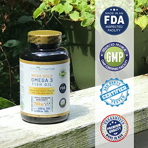 PROUDLY MADE IN THE USA SO YOU KNOW YOU ARE GETTING THE VERY BEST. Every single softgel of Total Activation Mega Gold originates in our GMP-certified production facility. Each softgel contains only the highest quality naturally-caught fish oil, rich in EPA and DHA, that is always PCB tested for purity and within Proposition 65 limits. Plus, these softgels are easy to swallow with no fishy aftertaste!