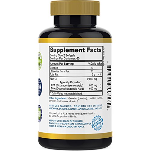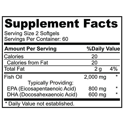 ENJOY THE VERY SAME CONCENTRATION OF EPA AND DHA AS OTHER WELL-KNOWN BRANDS FOR LESS! Our formula contains high potency blend of fish oil from naturally caught fish. Just two softgels contain 600mg of DHA and 800mg of EPA, essential Omega-3 fatty acids, and Vitamin E.