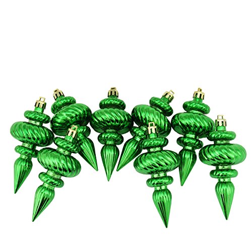 Northlight 8 Count Shiny Xmas Green Swirl Shatterproof Christmas Finial Ornaments, 4.25"