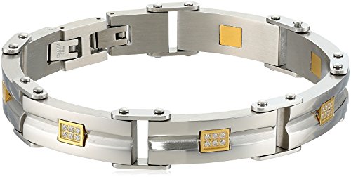 Men's Stainless Steel Textured with Gunmetal Grey IP and Lock Extender Link Bracelet