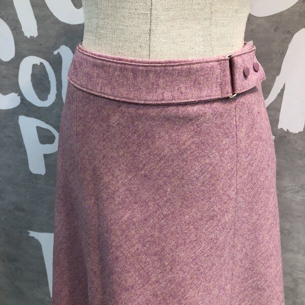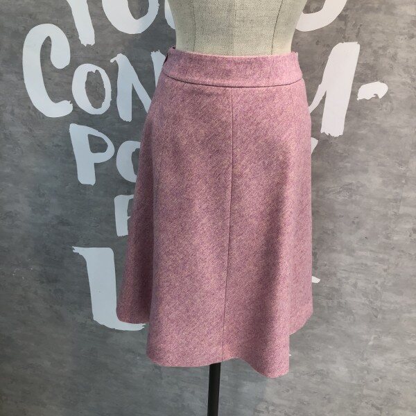미디 기장의 플레어 실루엣이 페미닌한 멜란지 컬러감의 울 블렌드 스커트입니다