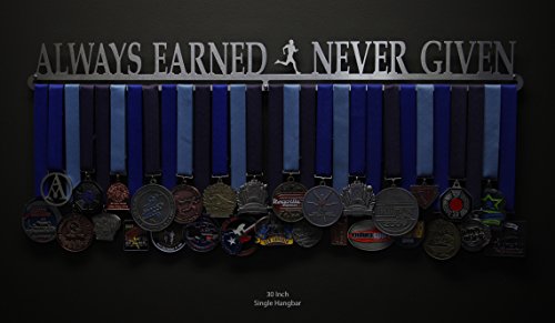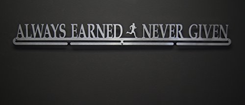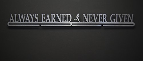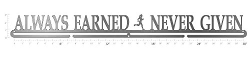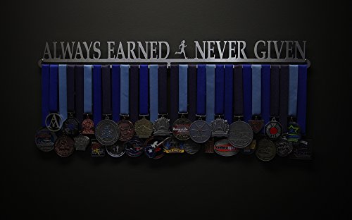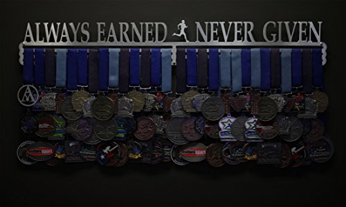 -. Binding : Misc. -. Brand : Allied Medal Hangers -. Feature : Laser cut from brushed stainless steel in Redmond, Washington, USA! / Spaced away from the wall for ease of use and visual appeal / Very simple to add or remove medals / Hangs 24-30 medals!! / Mounting hardware and easy installation instructions included -. Label : Allied Medal Hangers -. Manufacturer : Allied Medal Hangers -. ProductGroup : Sports -. ProductTypeName : SPORTING_GOODS -. Publisher : Allied Medal Hangers -. Studio : Allied Medal Hangers -. Title : Allied Medal Hanger - Always Earned Never Given
