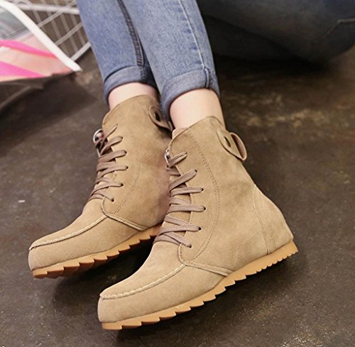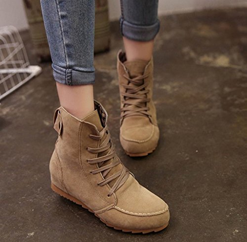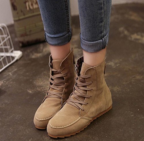 -. Title : Gloous Women Flat Ankle Snow Motorcycle Boots Female Suede Leather Lace-Up Boot