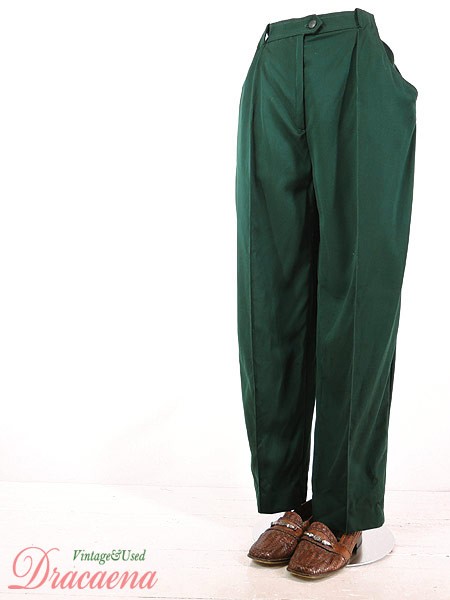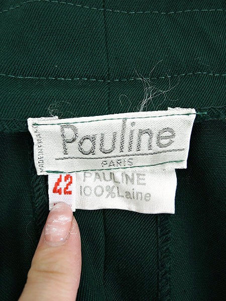 Ladies ブランド- カラー緑 メール便不可 コンディション★★★ 素材ウール 表記サイズ42 実寸サイズ 着丈 104 cm ウエスト 30 インチ( 76 cm) レングス(股下) 27 インチ(69 cm) 股上 34 cm 太もも幅 33 cm 裾幅 18.5 cm ※ウエスト・ヒップ以外は平置き採寸【code】#d