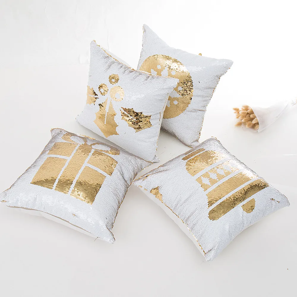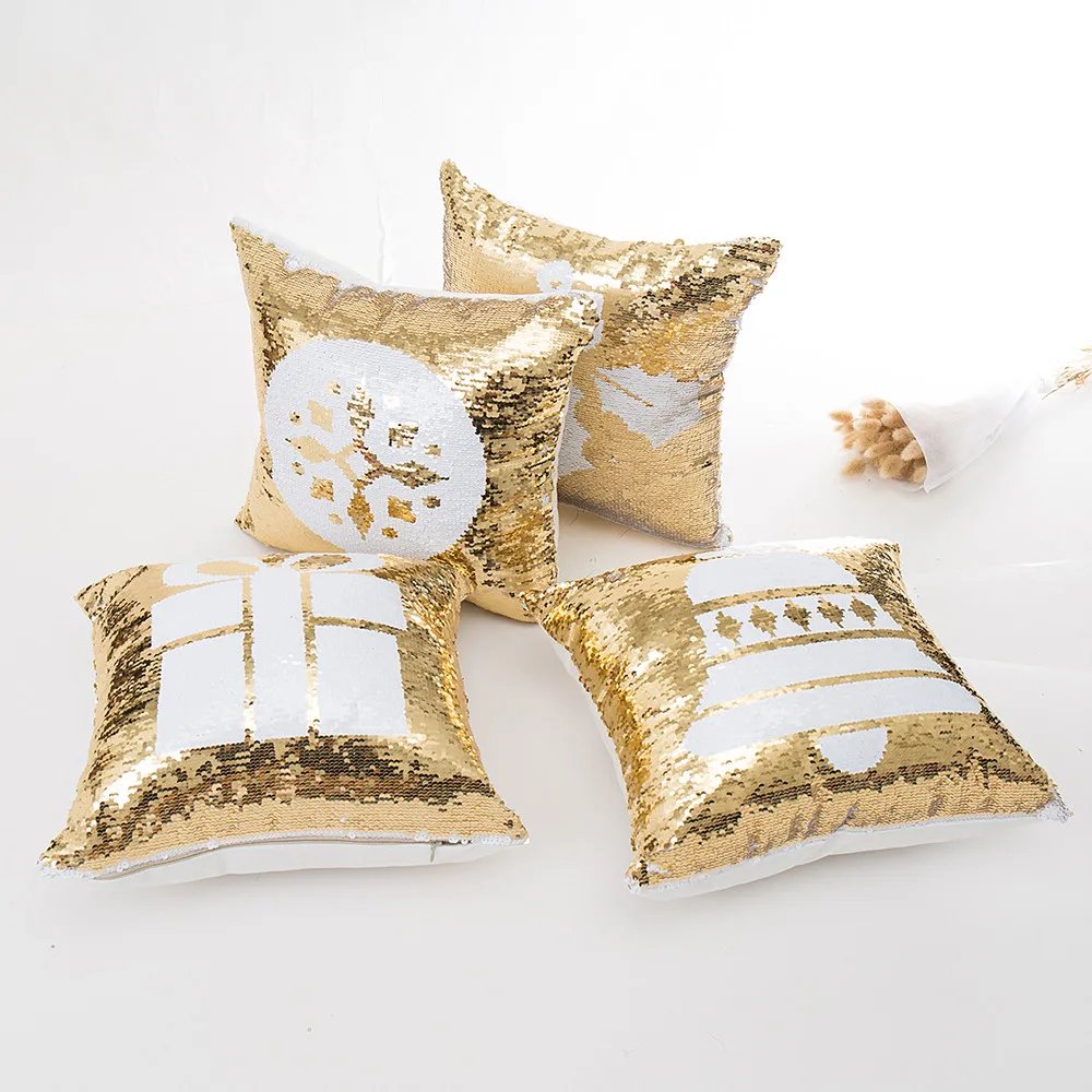 Merry Christmas Color Glitter Sequins Throw Pillow Case Cafe Home Decor Cushion Covers