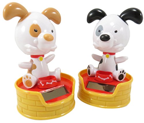 -. Feature : THE SPECIFICS: Set of 2 solar powered dancing happy dog dashboard trinkets (4" x 2.5") in white and black and white and brown on a yellow and red dog bed base, made of ABS plastic. / DANCE CONTEST: Have you ever seen a dog dance? Well, these pets can dance like you've never seen before! Who do you think will win - the white and black or the white and brown dog? / VERSATILE: Wherever you place this dancing duo together, it may help to brighten anyone's day! Put it on your dashboard, desk, counter, table, on a windowsill, in a garden, in a child's room, or even in a hospital room to cheer up a loved one! It comes with an adhesive circle for the bottom so it will adhere to most surfaces. / PARTY ESSENTIAL: It's a perfect item for yourself, family and friends any time of year. They also make a fun party favor at any birthday celebration!