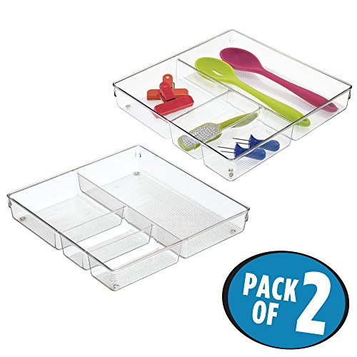 mDesign Kitchen Grand Drawer Organizers for Spoons, Spatulas, Bag Clips - Pack of 2, 4 Compartment, Clear