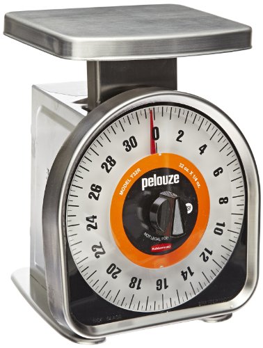 The Rubbermaid Y32R mechanical portion control scale has a rotating dial and is suitable for food service, industrial, or office environments. Its anodized aluminum body will not corrode or flex, and the stainless steel platform and bezel are corrosion resistant, easy to clean, and sanitary. Its dial rotates for quick taring, and it has an alignment notch for a precise zero reset. The dial shows weights in increments of 1/4 oz., up to a maximum capacity of 32 oz. The scale measures 8-5/8 x 6-1/2 x 6-5/8 inches/21.9 x 16.5 x 16.8 cm (H x L x W). (H is height, the vertical distance from lowest to highest point; L is length, the horizontal distance from left to right; W is width, the horizontal distance from front to back.) It is certified to National Sanitation Foundation (NSF) standards for food safety.