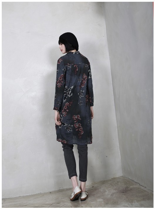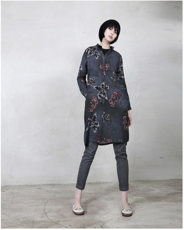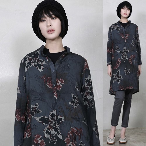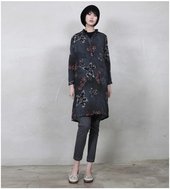 商品名:シャツ レディース ロング丈 ノーカラー 個性的 春 2018 モード系 個性的 40代 ファッション