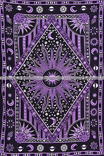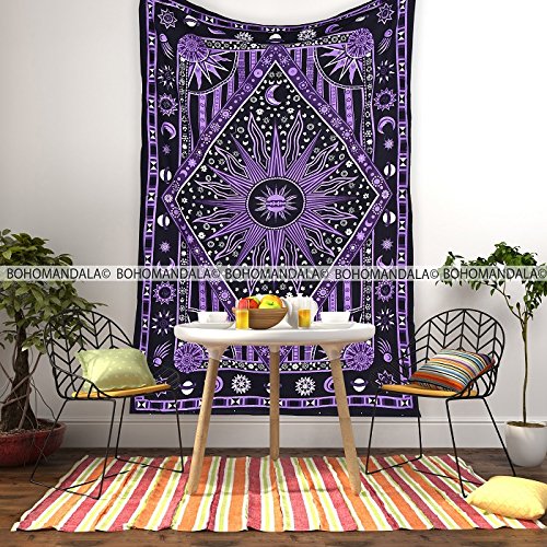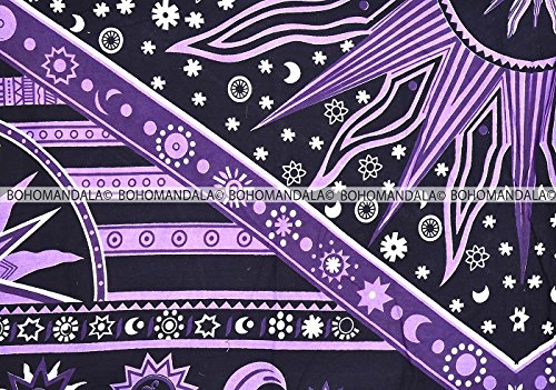 Beautiful New Purple Burning Sun Tapestry, Celestial Sun Moon Planet Tapestries, Hippie Hippy Boho Bedspread Mandala Coverlet By Bohomandala