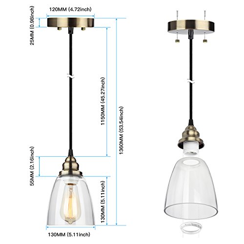 Antique Hanging Glass Lamp with a glass shade will give you a vintage industrial feeling, simple, classic and traditional. The clear glass shade well protects the bulb and maximizes its light.