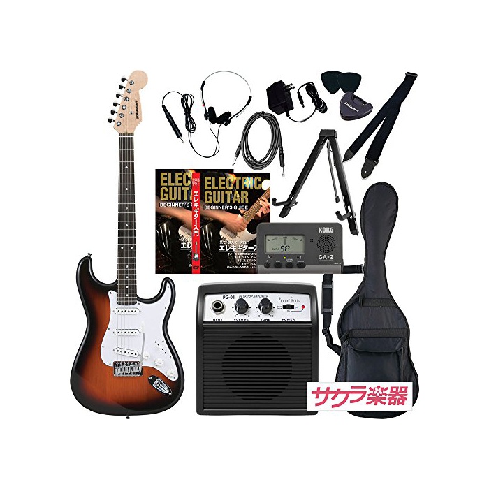 【리미티드 세트 플러스 세트 내용】전기 기타 본체(조정용 육각 렌치 부속)본체용 소프트 케이스 미니 앰프(2W)쉴드 케이블 스트랩 픽2 매픽 케이스KORG제 튜너(GA-2)앰프용 전지 교칙DVD교칙본 앰프용 전원 어댑터 헤드폰 기타 스탠드 사쿠라 악기 오리지널스《뎃카》