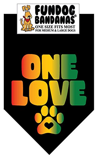 -. Binding : Misc. -. Brand : FunDog Bandanas -. Color : Black -. EAN : 0083351958954 -. Feature : Cute! / Fun! / Affordable! / Makes a great gift! / 22x22x31inches -. Label : The Dog Perk Corporation -. Manufacturer : The Dog Perk Corporation -. MPN : Fun-4354 -. PackageQuantity : 1 -. PartNumber : Fun-4354 -. ProductGroup : Pet Products -. ProductTypeName : PET_SUPPLIES -. Publisher : The Dog Perk Corporation -. Size : One size fits most for medium to large dogs -. Studio : The Dog Perk Corporation -. Title : BANDANA - ONE LOVE for Medium to Large Dogs - black with Rasta Colored ink -. UPC : 083351958954