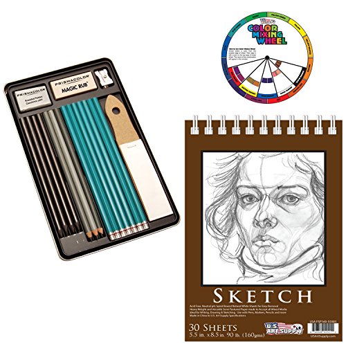 Create depth in your artwork by using a range of values for highlights, mid-tones and shadows. Designed specifically to give beginner artists the tools they need to develop with pencils for detailed line work, shading, and large area coverage Sharpens to a fine point without crumbling. Bring out the intricate details of your vision. Includes 7 pencils (8B, 6B, 2B, B, 2H, 4H, 6H), 4 woodless graphite pencils (2B, 4B, 6B, 8B), and 3 water-soluble graphite pencils (HB, 4B, 8B) Includes magic rub eraser, large kneaded rubber eraser, steel pencil sharpener and sanding board.