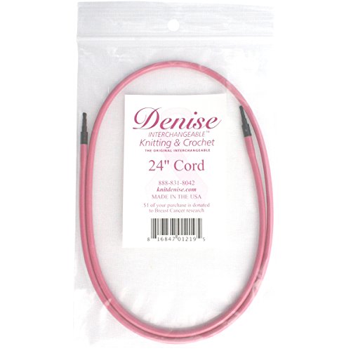 Denise Needles Denise Interchangeable Knit and Crochet Long Cord, 24-Inch, Pink