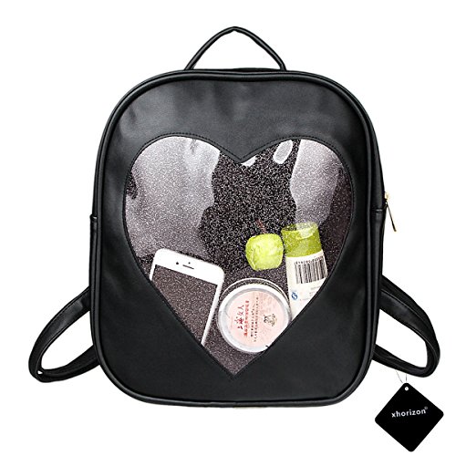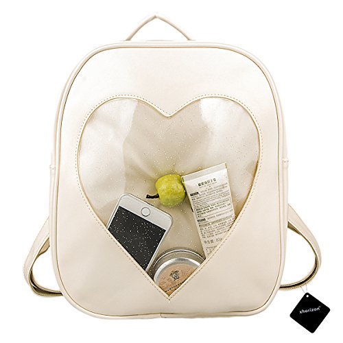 xhorizon TM FL1 Candy Leather Backpack Plastic Transparent Heart Beach Girls School Bag