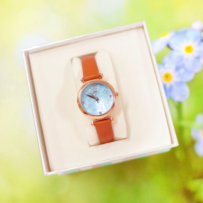 2월 탄생화인 물망초 다이얼이 귀여운 가죽시계