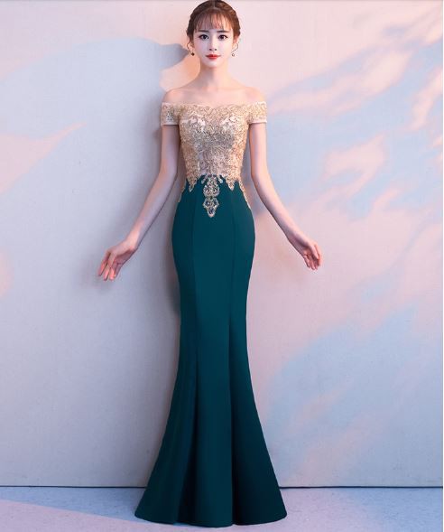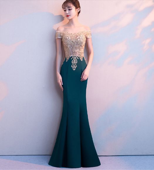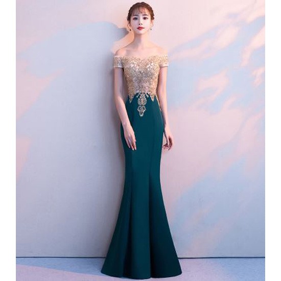 美しいマーメイドラインの華やかなロングドレスです。