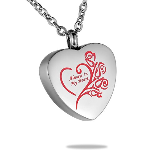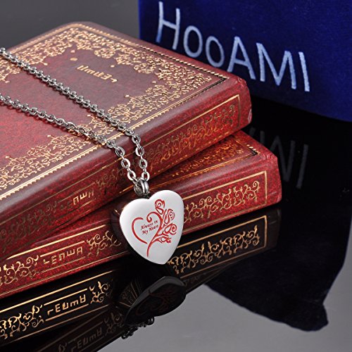 -. Title : HooAMI Always in My Heart Urn Jewelry Cremation Ashes Necklace,Silver Red