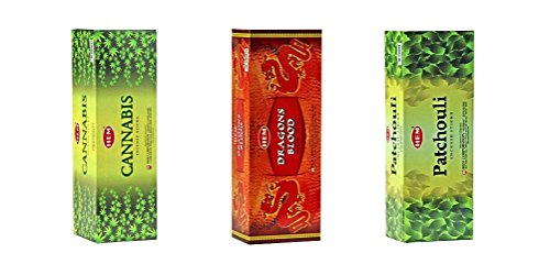 HEM Incense Bundle of 3 Boxes of 120 Sticks (Total 360 sticks) (Cannabis, Dragons Blood, Patchouli)