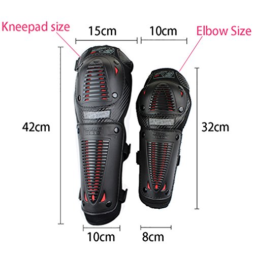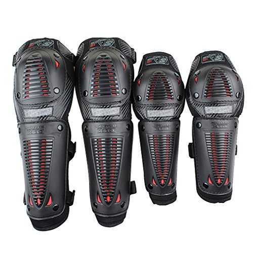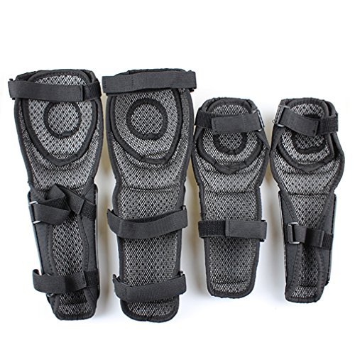 -. Feature : Include:1 Pair of Knee Shin Pads (2 PCS) & 1 Pair of Elbow Pads (2 PCS) / High impact PP shells with mesh fabric & foam pads allows for a greater degree of comfort and protection for knees and shins / Multiple large vents in plastic shells and foam for maximum comfort and ventilation / Adjustable elastic quick-release straps for optimum fit and easy removal. / Suitable for protecting knees and elbows of adult motorcycle riders during daily riding or motocross racing, etc.