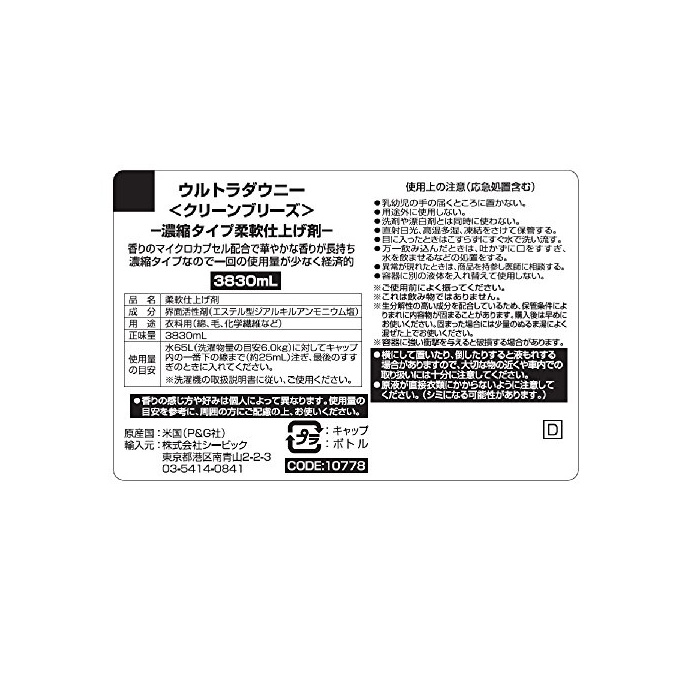 원본상품명: 【大容量】 ULTRA Downy (ウルトラダウニ?) 柔軟? クリ?ンブリ?ズ 3830ml