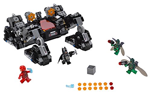 -. Feature : Includes 4 minifigures: Batman, The Flash and 2 Parademons / Knightcrawler features an opening minifigure cockpit with translucent-red windshield, dual 6-stud rapid shooters, 4 posable limbs, each with 2-wheel tracks for drive or crawl modes / Weapons include Batman's gun and Batarang, The Flash's 2 Power Blasts and the Parademons' handheld stud shooters / Knightcrawler measures over 3in (10cm) high, 8in (22cm) long and 7in (18cm) wide in drive mode, and over 3in (8cm) high, 11in (30cm) long and 7in (18cm) wide in crawl mode / Mother Box measures under 1in (1.6cm) high and 1in (1.6cm) square