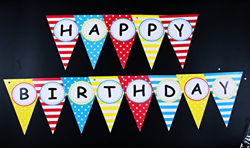 Langxun Happy Birthday Colorful Triangular Paper Banner | Birthday Party Decorations Streamers