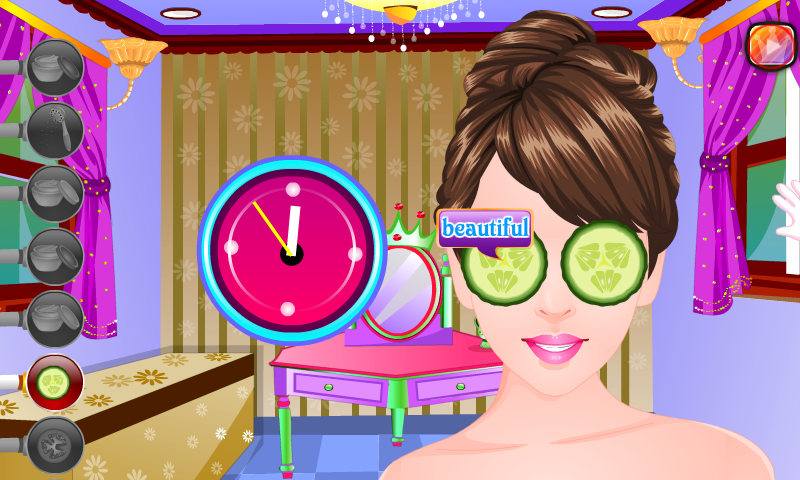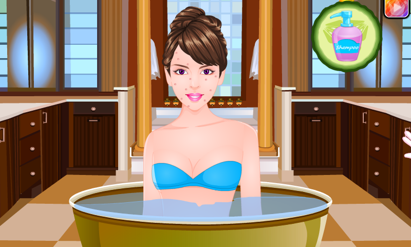 - Feature : Hello, from ancient times girls were concerned with beauty, all girls want to be the most beautiful.. They tried different kinds of beauty regardless of age and the period in which they lived. Nowadays it has become very easy to achieve beauty because there are increasingly many beauty salons and women know how many tricks you can do at home. / When they have free time to relax the women prefer to attend to their appearance. There are two things that are very easy to combined for example a bath herb with a facial scrub because we all know that these two are the most relaxing ways. / In this game for girls you'll meet a young girl named Adrian who due to work place does not have time to deal with her appearance. Now that you have become her friend she can count on you? do you think that you can help her? If your answer is affirmative then you should know that all you have to do is follow the instructions. The red arrow is the one that will guide you through the steps. The goal is to prepare Adrianne for a party that will take place at one of her friends. / 1) First you will have to help her to make bath. The young girl is already in the tub and you have to wash her hair, you must choose carefully one of the bottles of shampoo and then rinse well with warm water. Massage the scalp with special gloves that you may select with a single click. / 2) It is time to relax Adrianne through massage. You will use: massage oil, exfoliating cream, moisturizer cream for pain, relaxing lotion, strawberry for softness, flowers for a pleasant smell and a massage with volcanic stones with therapeutic role. / 3) Now you need to make sure he takes you a facial. Here everything is simple, the left face you will find everything you need such as: gel exfoliating cream for dry skin, face mask with strawberry extract, a toner and eye area you will find a few slices of fruit. After each application do not forget to wash her face with the shower. / 4) Finally after such treatment as that of a star, Adrianne needs and counsel regarding clothing. It has a few dresses in the closet, you can choose the one you like more, every dress needs accessories. / Adrianne is ready to party, we are sure that she will be the most beautiful and a lot people will compliment her. / Thank you for agreeing to help her, without you she would not be able to prepare, and we invite you to play more good games for girls / Have fun with this makeup game!