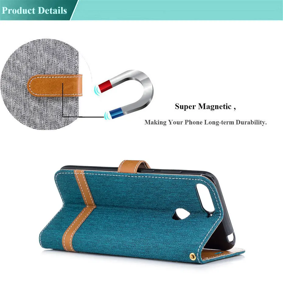 Features:Denim Mixed Colors PU Leather Wallet Case