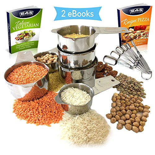 SALE! Measuring Cups and Measuring Spoons Set For Baking 304 Stainless Steel Nesting Cups And Spoons PROFESSIONAL design spoons + 2 FREE Bonus eBooks!