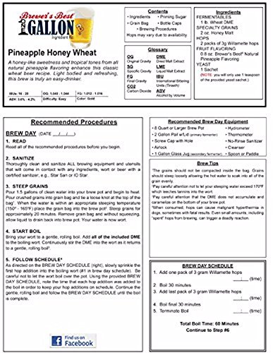 Studio : Brewer's Best Publisher : Brewer's Best Binding : Misc. Product Description A honey-like sweetness and tropical tones from all natural pineapple flavoring enhance this classic wheat beer recipe. Light bodied and refreshing, this brew is truly an easy-drinker. 0