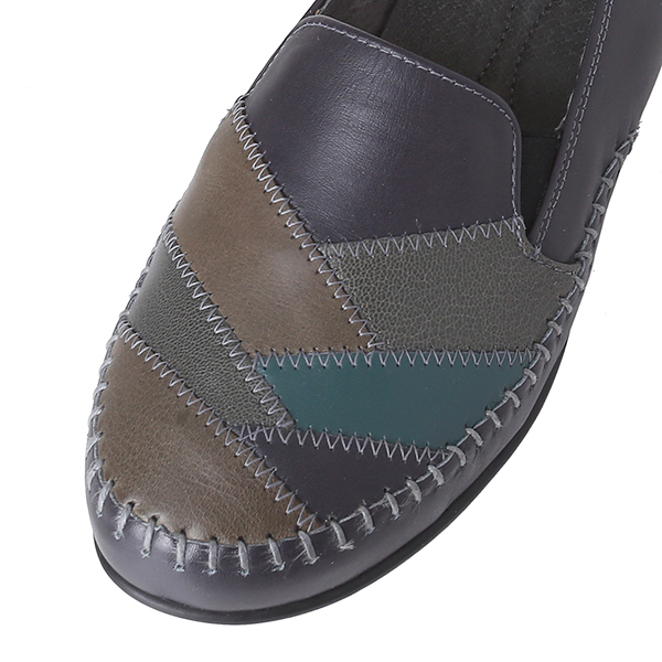 Half 시스 공법을 적용하며 보행시 발의 움직임에 따라 유연하게 움직이고, 에어메쉬 쿠션인솔을 사용하여 신발 내부 통기성이 좋아 착화감이 우수함. 다양한 질감의 소재를 믹스매치하여 유니크한 스타일의 슬립온