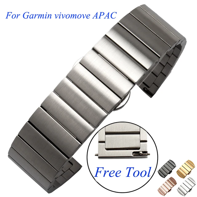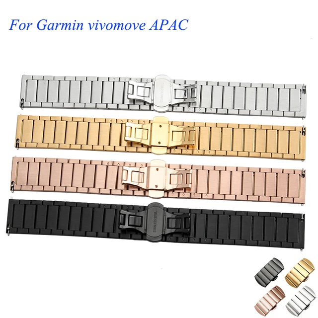 대한 garmin vivomove apac 20 미리메터 금속 밴드 스테인레스 스틸 시계 스트랩 블랙 골드 럭셔리 스마트 팔찌