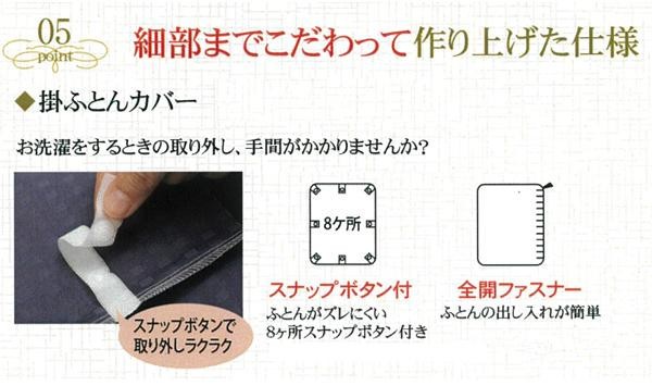 | 仕様 | 8ヶ所スナップボタン付 洗濯機使用可 |