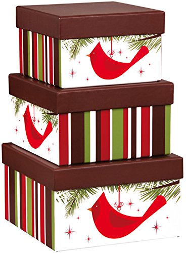 Christmas Nested Gift Boxes with Lids, Set/3, Festive Red Cardinal