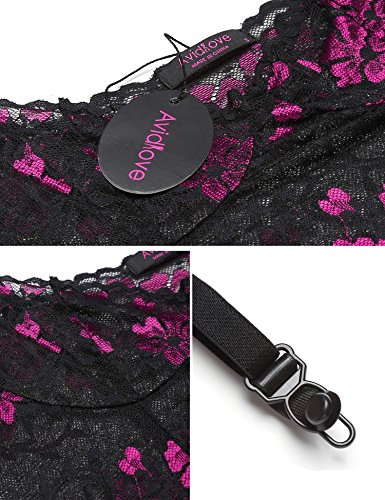 Matching garter panty has a sheer mesh with lace, and adjustable garter straps withThigh high stockings (Stocking are sold separately