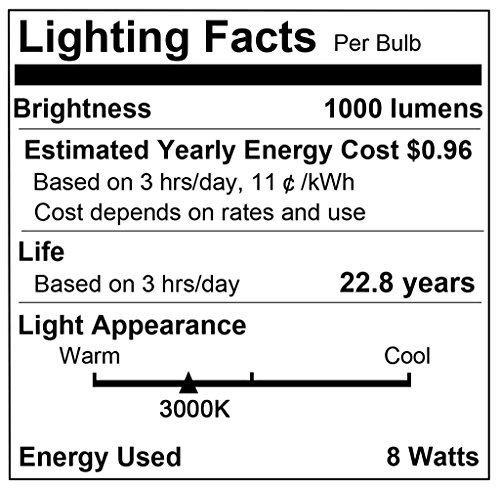 Studio : JandCase Publisher : JandCase Product Description Specifications:? Condition: Brand new? Package includes: 6 pieces of 8W E26 LED Bulbs? Color: Soft White (3000K)? Luminous Intensity: 1000LM? Material: Aviation Aluminum and Plastics? Input Voltage: 110V-240V? Beam Angle: 270 degrees? Life Span: 30000 hours? Features:?? Give off a soft golden light without glare and harsh shadows, diffused?light enhances visibility?in the yard.? Waterproof, hermetically sealed using ultrasonic welding