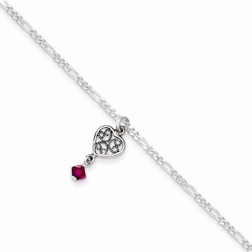 Solid 925 Sterling Silver Antiqued Dark Pink Crystals Dangling Love Hearts Bracelet Anklet 9"
