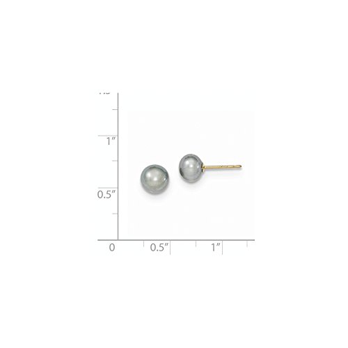 Solid 14k Yellow Gold 6-7mm Grey Button FW Cultured Pearl Stud Earrings