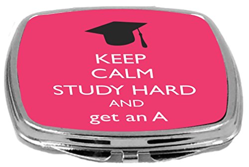 Rikki Knight Compact Mirror, Keep Calm Study Hard and Get an a Tropical Pink