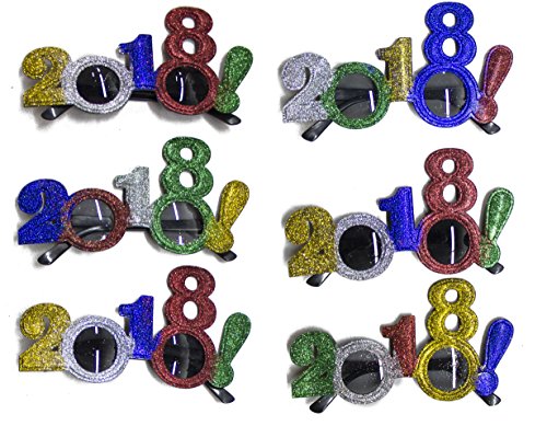 6 Pack Of 2018 New Years Eve Party Glasses (Multi Glitter!)