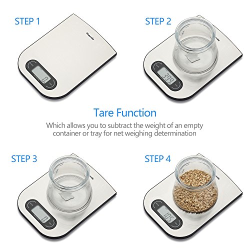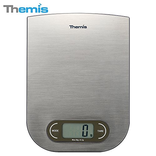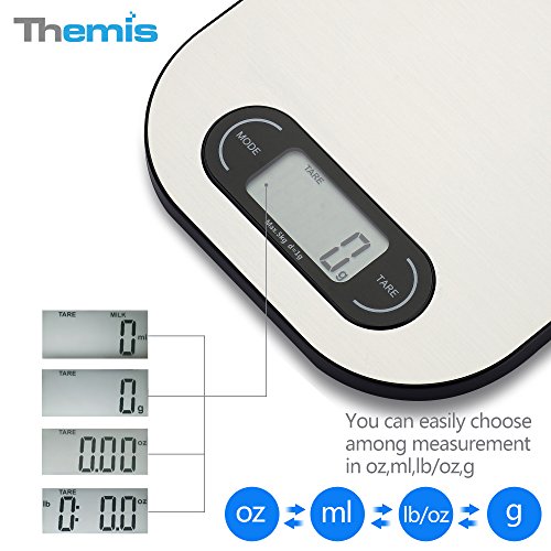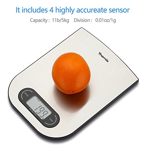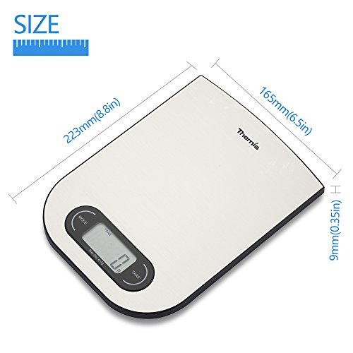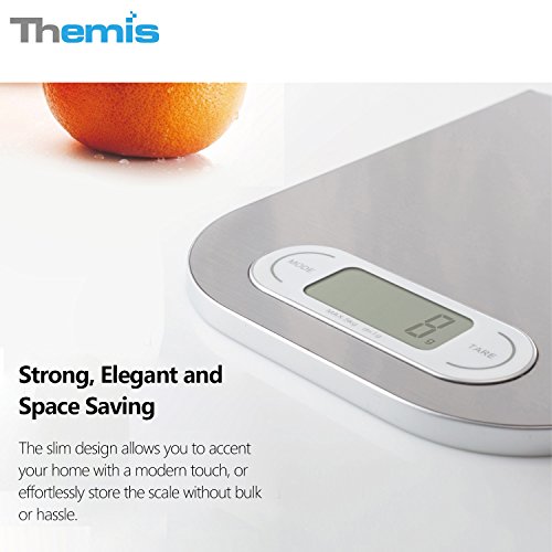 THEMIS TMS1626 Ultra Thin Digital Multifunction Stainless Steel Kitchen Food Scale, High Precision 1g to 5kg / 0.1 Oz to 11 Lbs