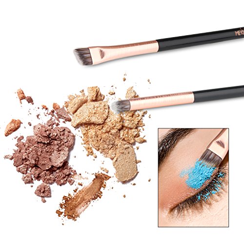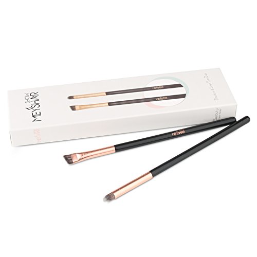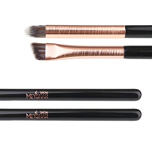 MEYSHAR Eyebrow&Eye Shadow Makeup Brushes Cosmetic Brush 2pcs Set with Premium Synthetic Fiber Hair Wood Handle Aluminum Ferrule