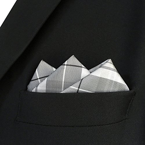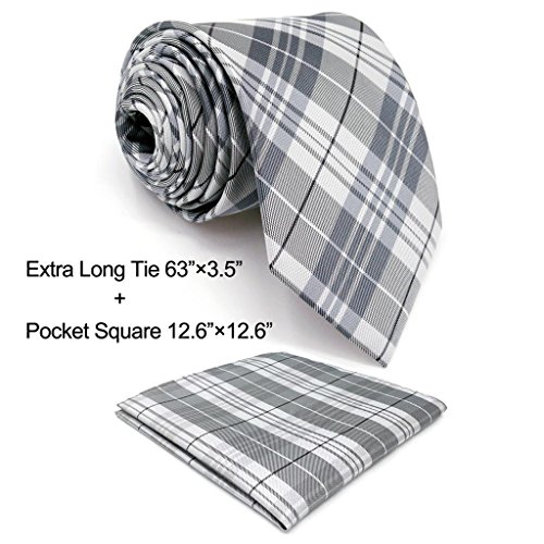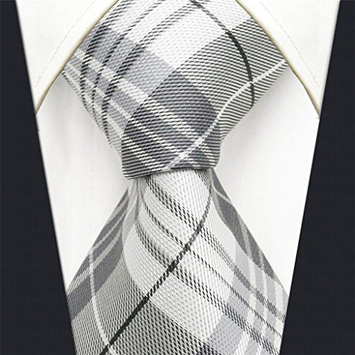 | ShlaxWing Mens Neckties Plaids Silver Checkers Extra Long Silk Tie |