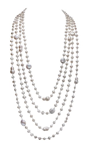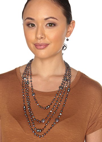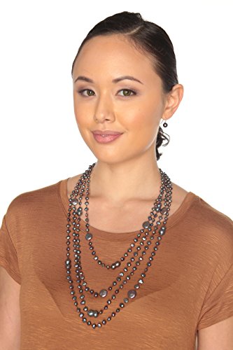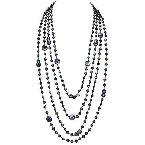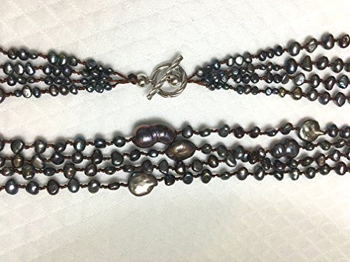 HinsonGayle 'Selena' 4-Strand Ultra-Iridescent Multicolored Black Freshwater Cultured Pearl Necklace. A HinsonGayle signature design, Selena is absolutely gorgeous with colorful peacock black pearls of various shapes including coin pearls, baroque pearls and seed pearls. Each one is hand strung on contrasting brown thread and a bit unique with a variety of pearl shapes.