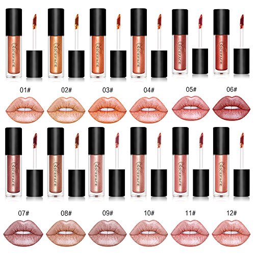 Coosa 12PCS Non-stick Cup Metal Lipstick Waterproof Sparkling Lip Gloss Vivid Color Matte Lip Liquid Long Lasting Makeup 12 Colors Set (12pcs)