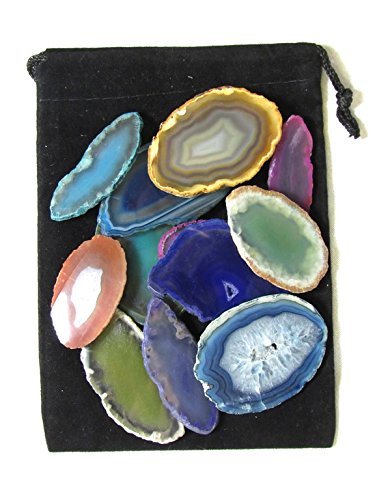 Zentron Crystals Colorful Set of 12 Polished Agate Slices in Velvet Bag